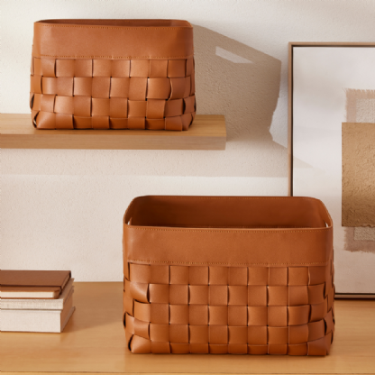 Lindo cesto em couro sintético. Prático e versátil é a solução perfeita para armazenar seus pertences e dar um toque clássico e elegante aos ambientes.