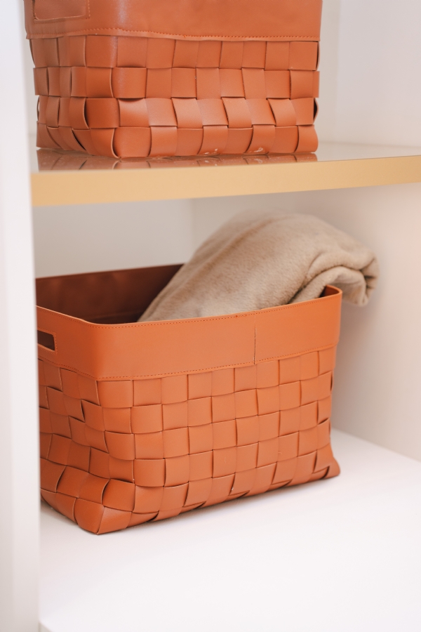 Podemos usá-lo para guardar mantas ou almofadas na sala de estar, para organizar seu lavabo ou até mesmo como organizador de revistas e livros.