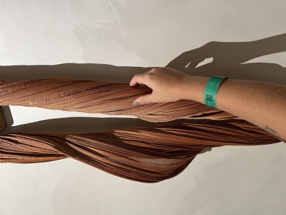 Colar decorativo confeccionado em tela, madeira teca e cordas creme. Uma peça perfeita para complementar a decoração do ambiente.