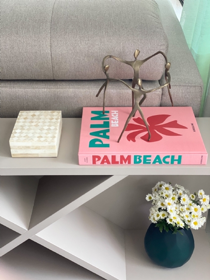 Combine com livros decorativos ou bandejas para criar uma composição elegante.